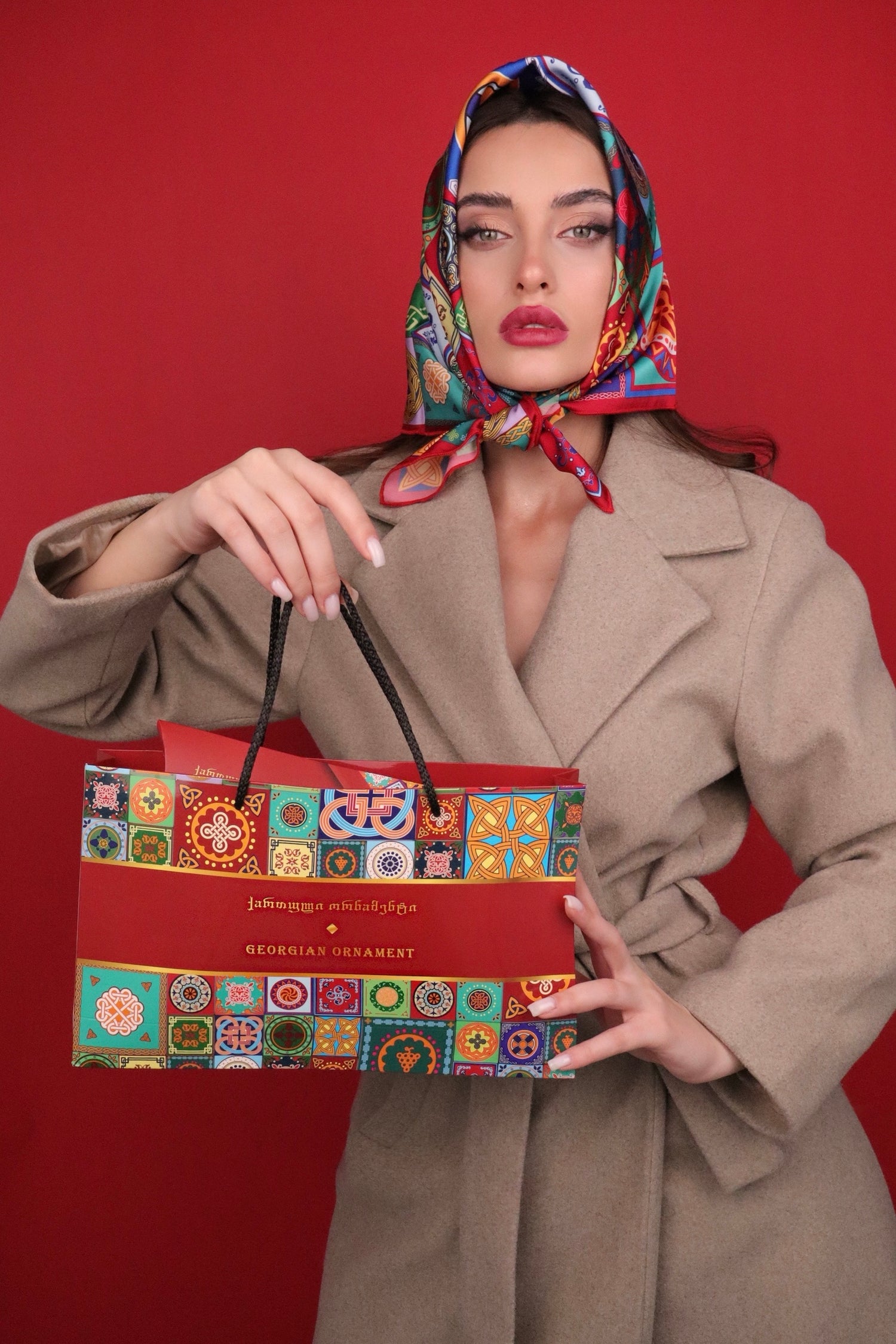 The scarf features elements found in classic Georgian art and architecture