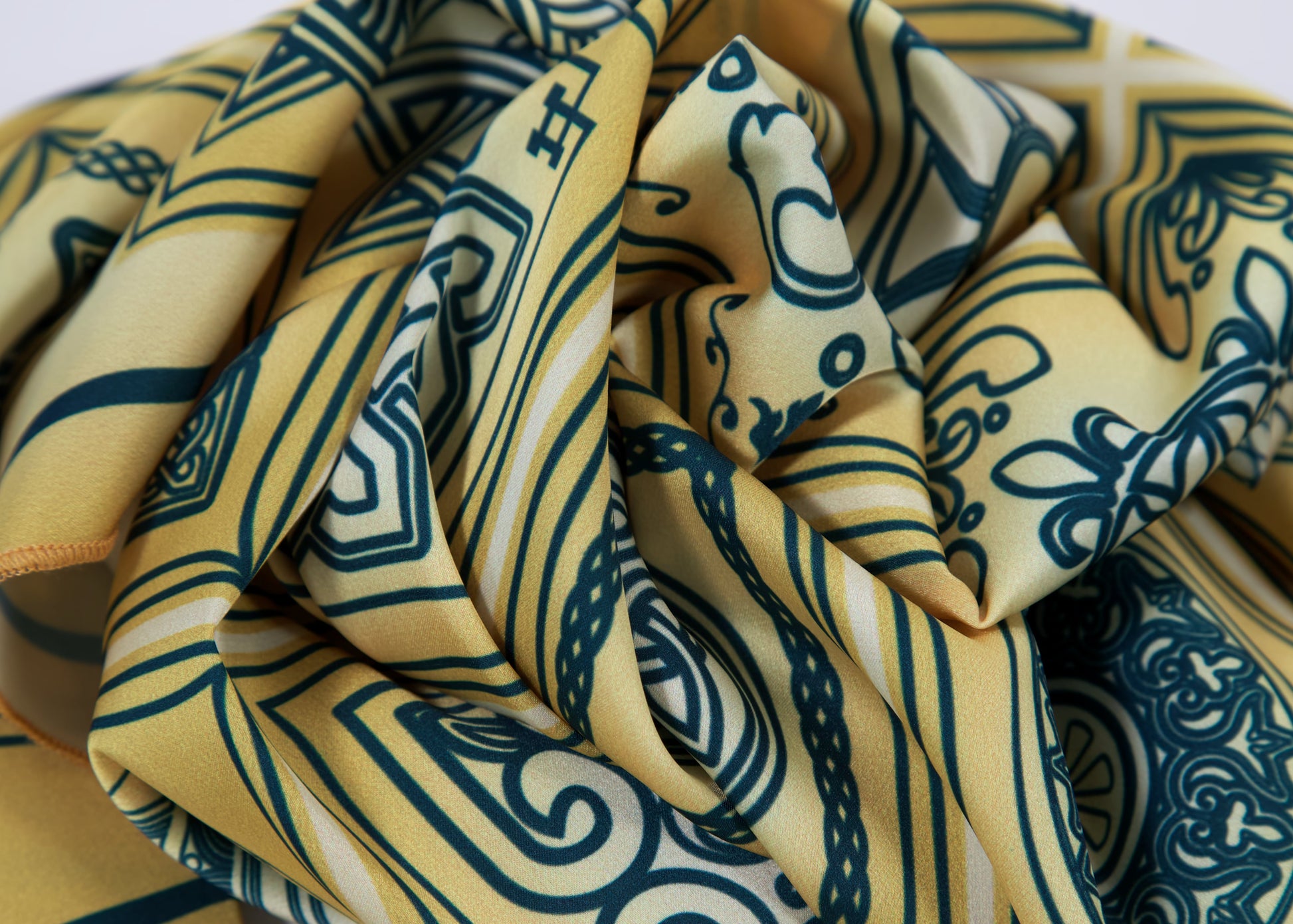 This unique silk scarf is inspired by the artistic legacy of an ancient land — a crossroads of cultures, colors, and stories that have shaped centuries of creativity.