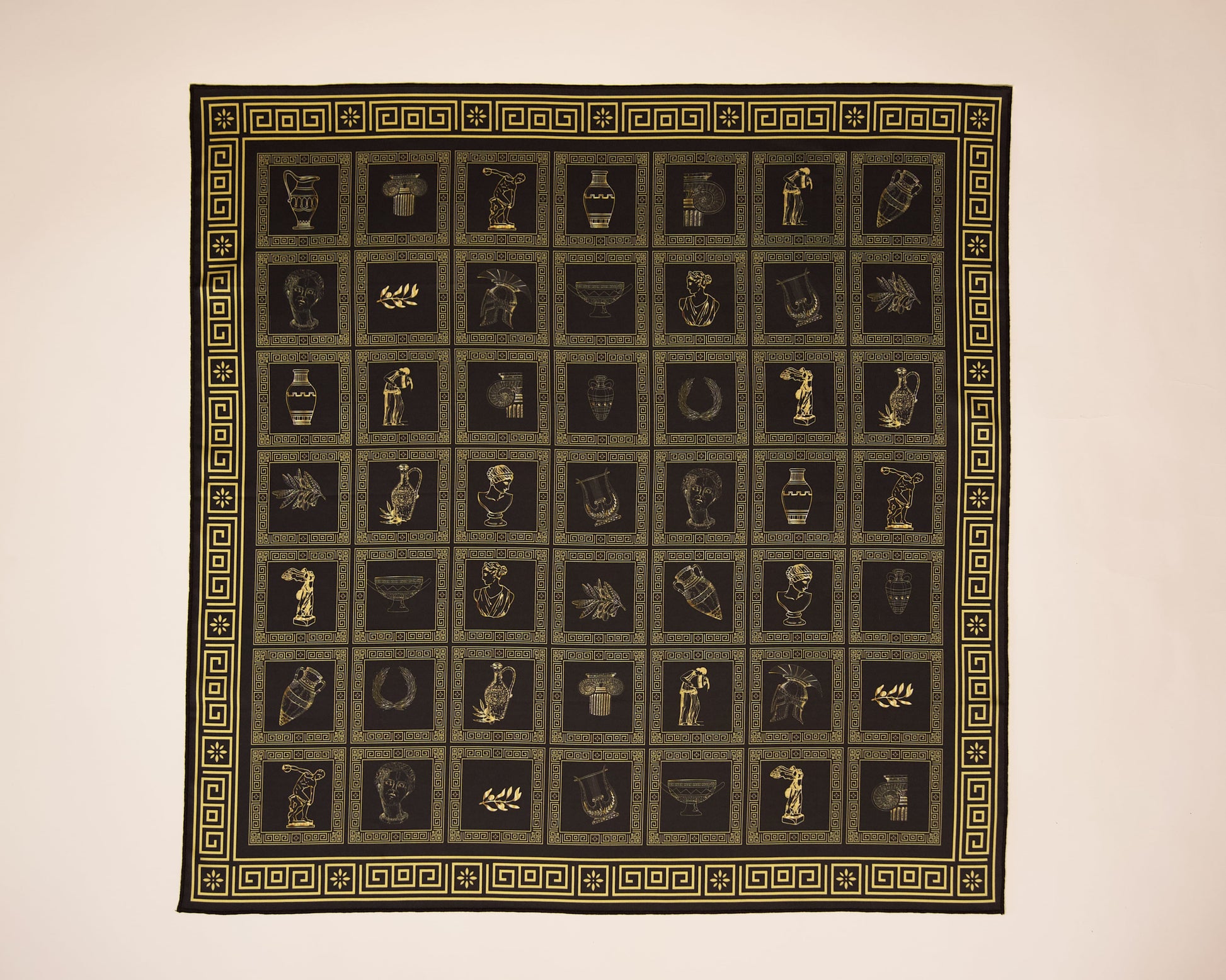 Drawing from classical Greek motifs, architectural forms, and mythological symbols, this scarf blends timeless aesthetics with modern sophistication — a harmonious union of cultural depth and contemporary style.