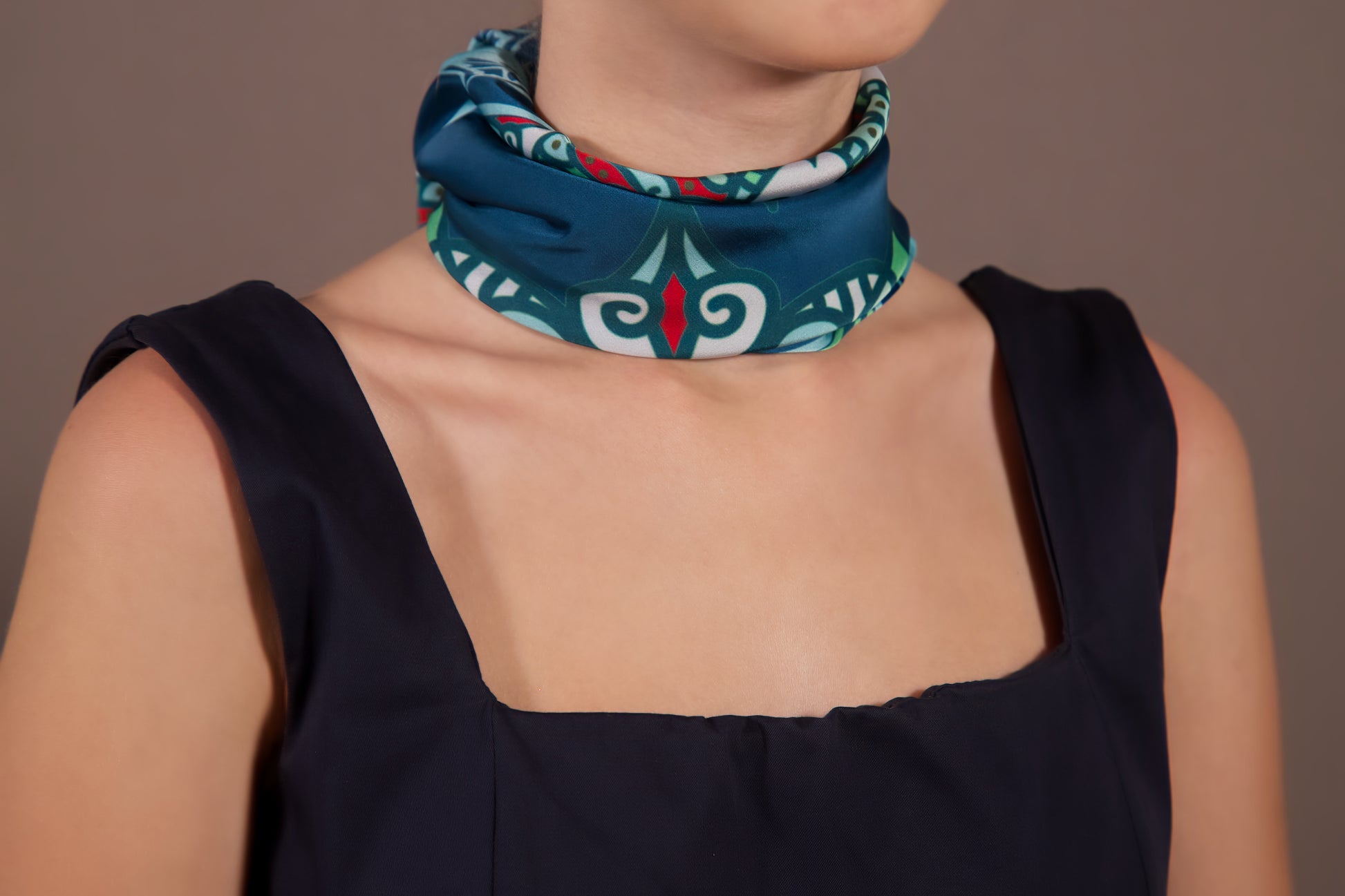This unique silk scarf is inspired by the rich heritage of ancient Indian culture, centered around the sacred mandala — a spiritual symbol representing wholeness, inner peace, and connection to the universe.