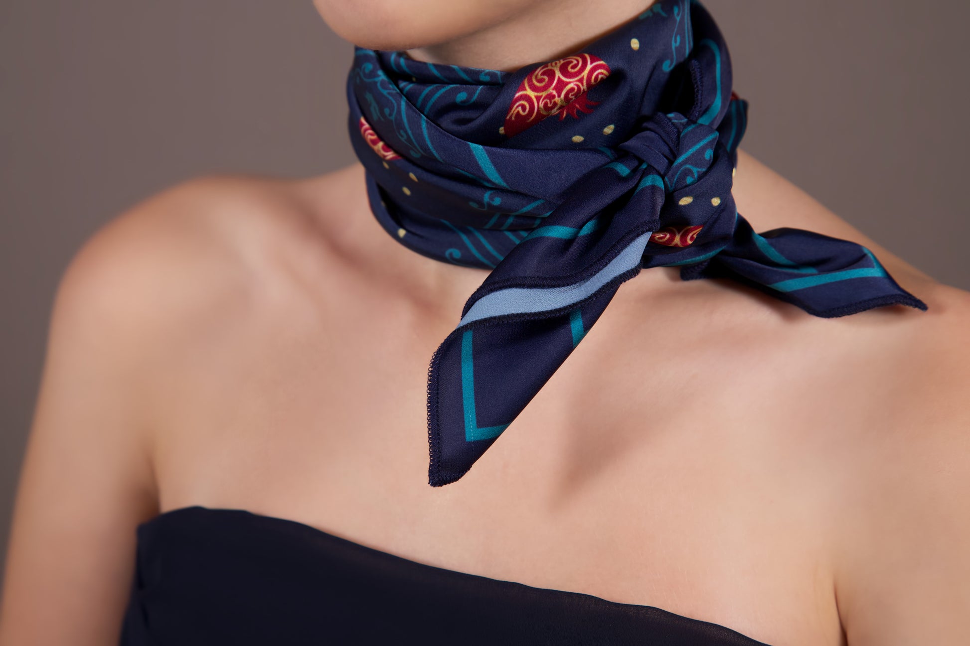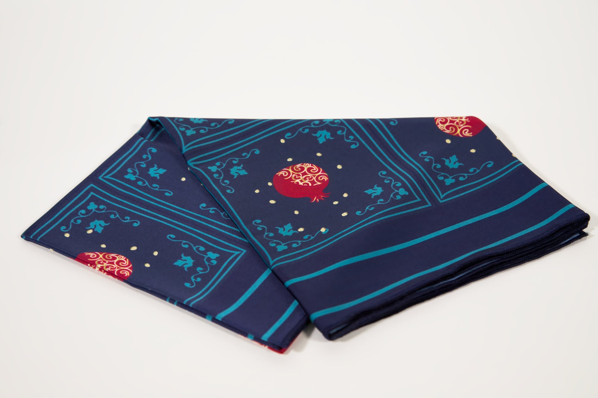 The history of the pomegranate motif spans civilizations from Mesopotamia to Anatolia, Persia, Greece, and the Caucasus. In ancient Persia, the pomegranate was considered sacred in Zoroastrianism, symbolizing purity and spiritual energy. Across cultures, it came to represent family unity, love, and motherhood. In the Caucasus, newlyweds would traditionally receive a pomegranate as a symbol of fertility and abundance. Wearing this symbolic scarf connects you to centuries of cultural tradition.
